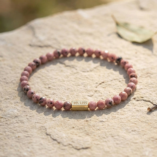 Charms z rodonitem Pozłacany – Kamień miłości, uzdrowienia i równowagi emocjonalnej - Mosiądz